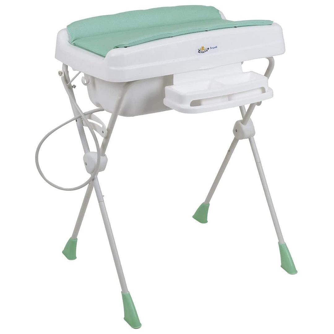 Possui trocador com estofado macio e suave ao toque, assento redutor de profundidade para recém-nascidos, porta-objetos removível com suporte para toalha, gancho para guardar a cuba da banheira junto ao suporte e mangueira para um prático escoamento de água. Além de proporcionar a facilidade de ter tudo à mão para um momento agradável para os papais e bebê.