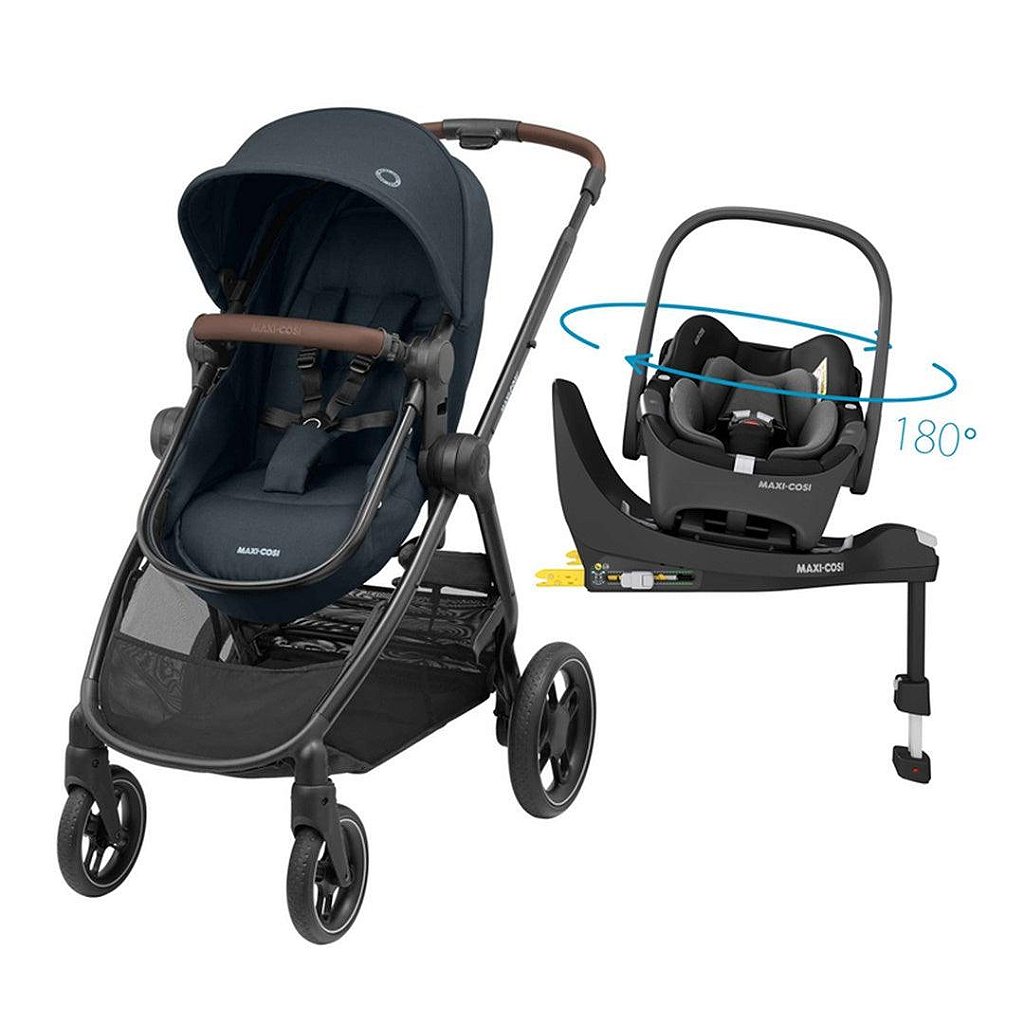 Conteúdo da embalagem: 1 carrinho, 1 mosquiteiro, 1 cobre pernas, 2 adaptadores (Citi / Pebble|Coral|Marble), 1 bebê conforto, 1 base.