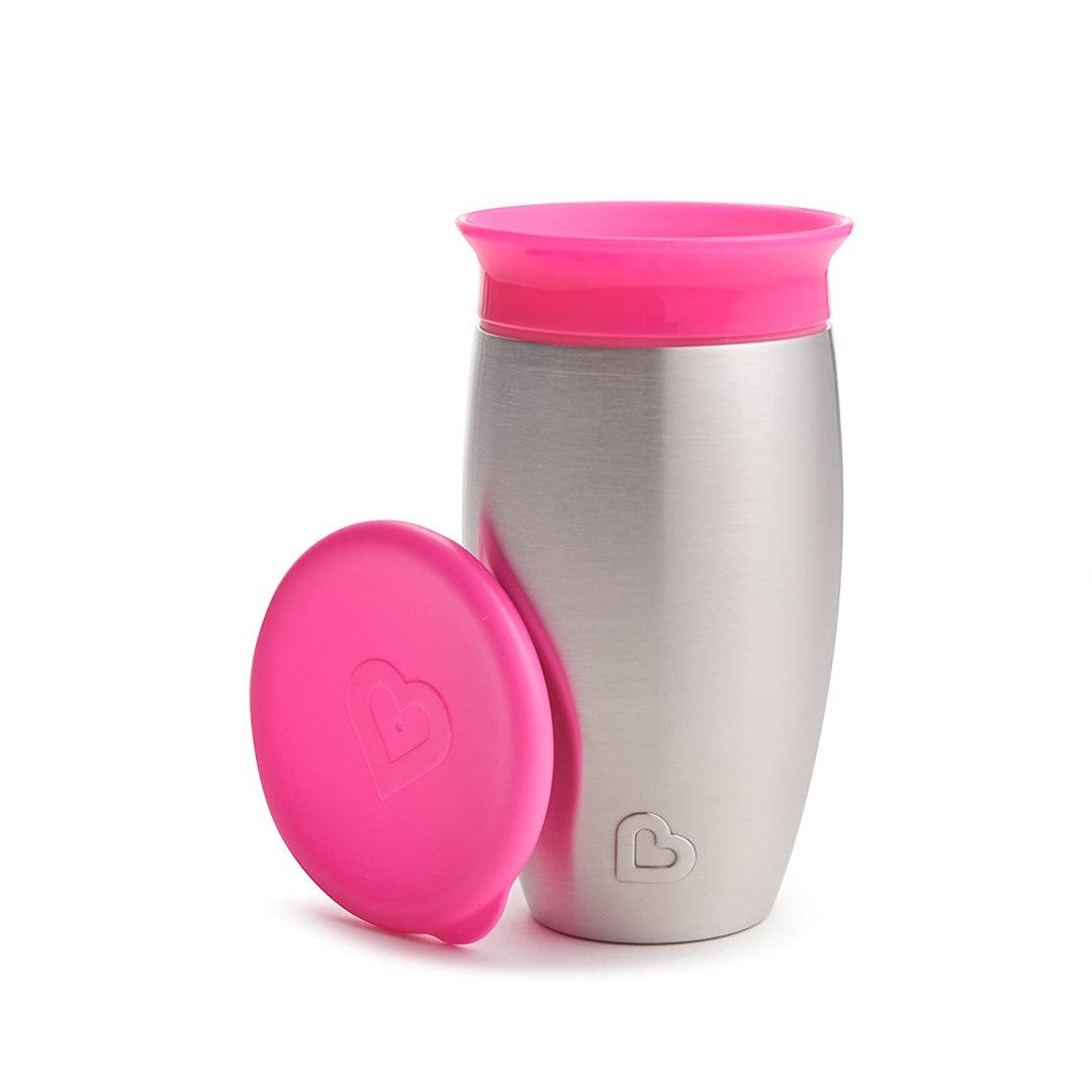 Este copo de aço inoxidável com parede dupla selado a vácuo mantém os líquidos frescos durante todo o dia. O material leve em aço inoxidável é extremamente durável e o design de parede dupla não deixam as mãos geladas. Também inclui tampa de copo correspondente para manter a borda limpa em movimento! Sem bicos, canudos ou peças extras, o Copo De Treinamento Térmico Munchkin Miracle Rosa 12M+ 296ML é fácil de usar e ainda mais fácil de limpar.