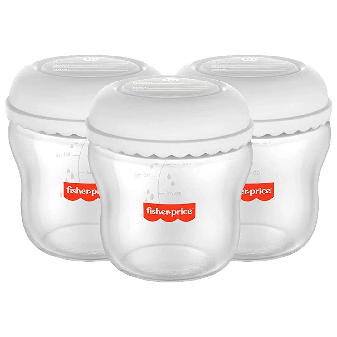 Os recipientes são compatíveis com toda a linha de extratores e mamadeiras Fisher Price. Contendo 3 frascos de 150ML cada, com área de rotulagem lavável que permita colocar informações importantes nos frascos como o nome, data e horário da extração do leite. Sua tampa tem o sistema de rosquear que faz uma total vedação, impedindo vazamentos e proporcionando tranquilidade na hora de transportar os frascos.