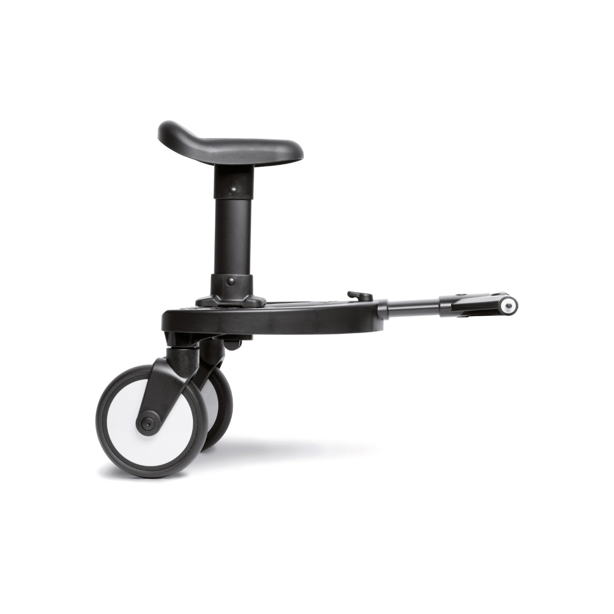 A Plataforma de Carona Stokke YOYO é instalada na parte traseira do carrinho com apenas um clique e uma só mão, oferecendo uma solução prática para levar uma segunda criança junto, sem complicações.