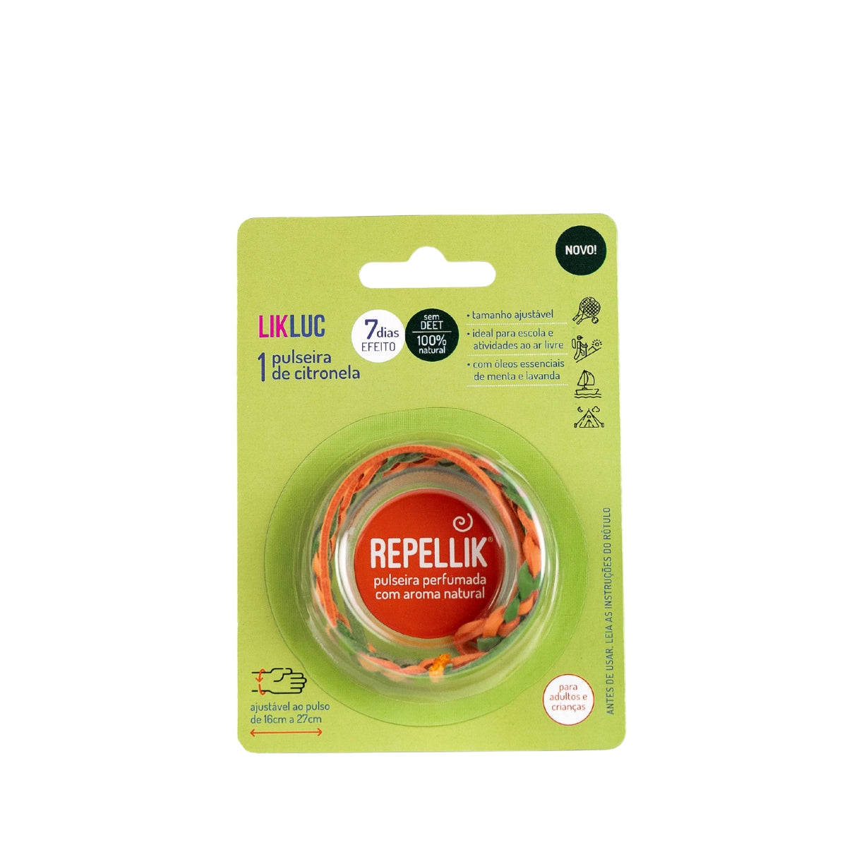 A Pulseira Repelente de Citronela Repellik LikLuc combina proteção eficaz, conforto e estilo em um só acessório. Com fórmula 100% natural e livre de DEET, ela oferece proteção contínua por até 7 dias, sendo perfeita para passeios ao ar livre, viagens e o dia a dia da família.